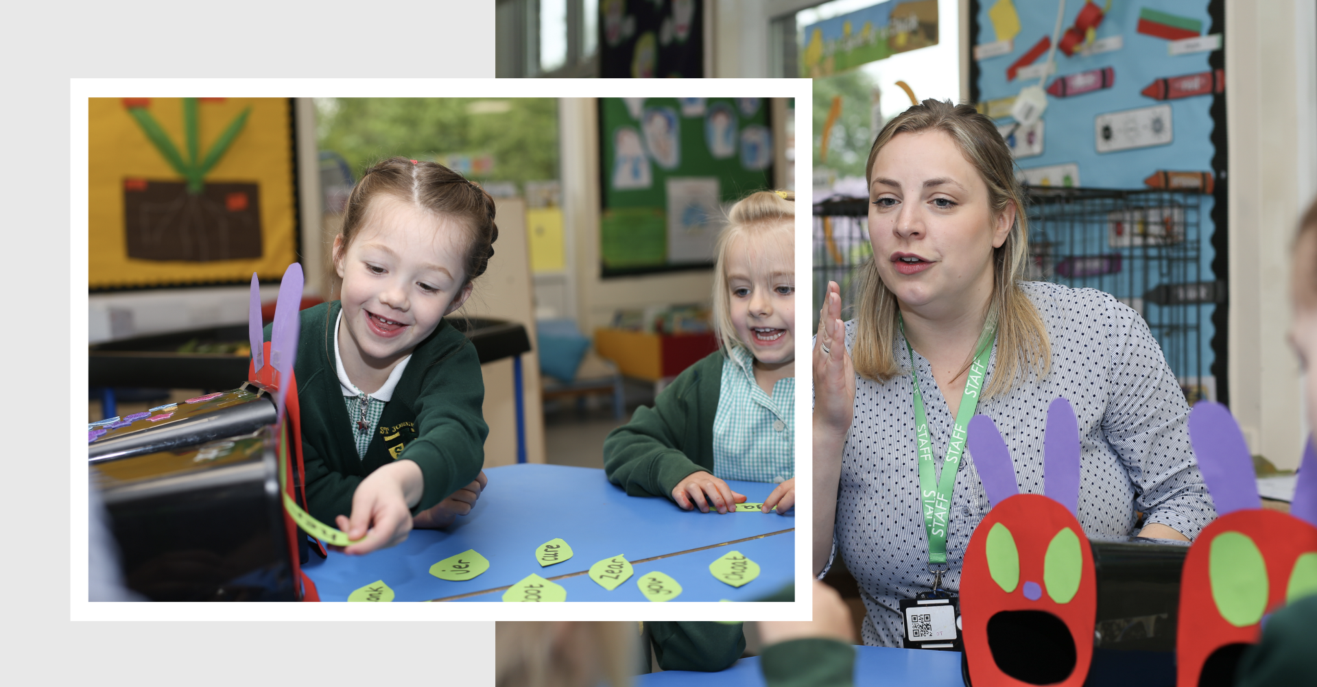 Hello, our names are Miss Middleton and Mrs Russell and we are so excited to help build firm foundations for your child’s education and be a part of your child’s first steps on their school journey. We love teaching because each day takes us on a different, exciting adventure, allowing us to discover new surprises and gain knowledge.